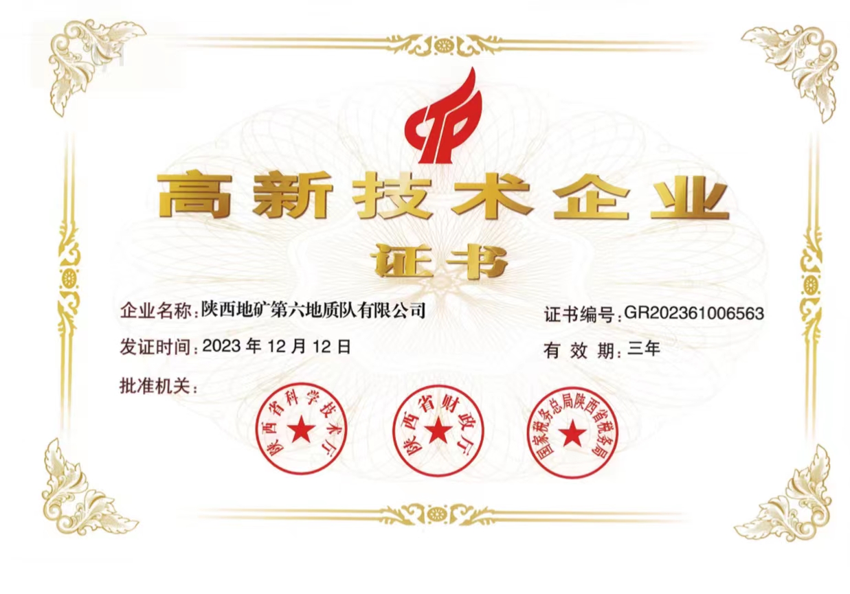 喜報!陜西地礦六隊取得高新技術企業(yè)證書